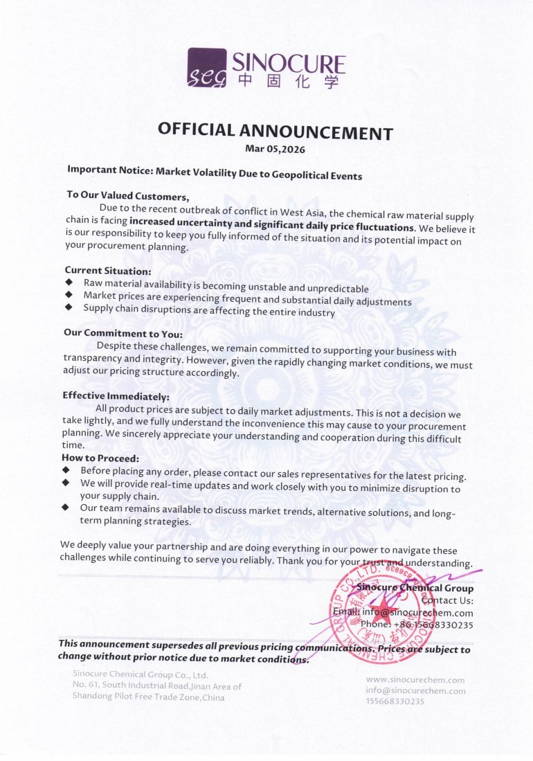 Due to the recent outbreak of conflict in West Asia, the chemical raw material supply chain is facing increased uncertainty and significant daily price fluctuations. We believe it is our responsibility to keep you fully informed of the situation and its potential impact on your procurement planning.