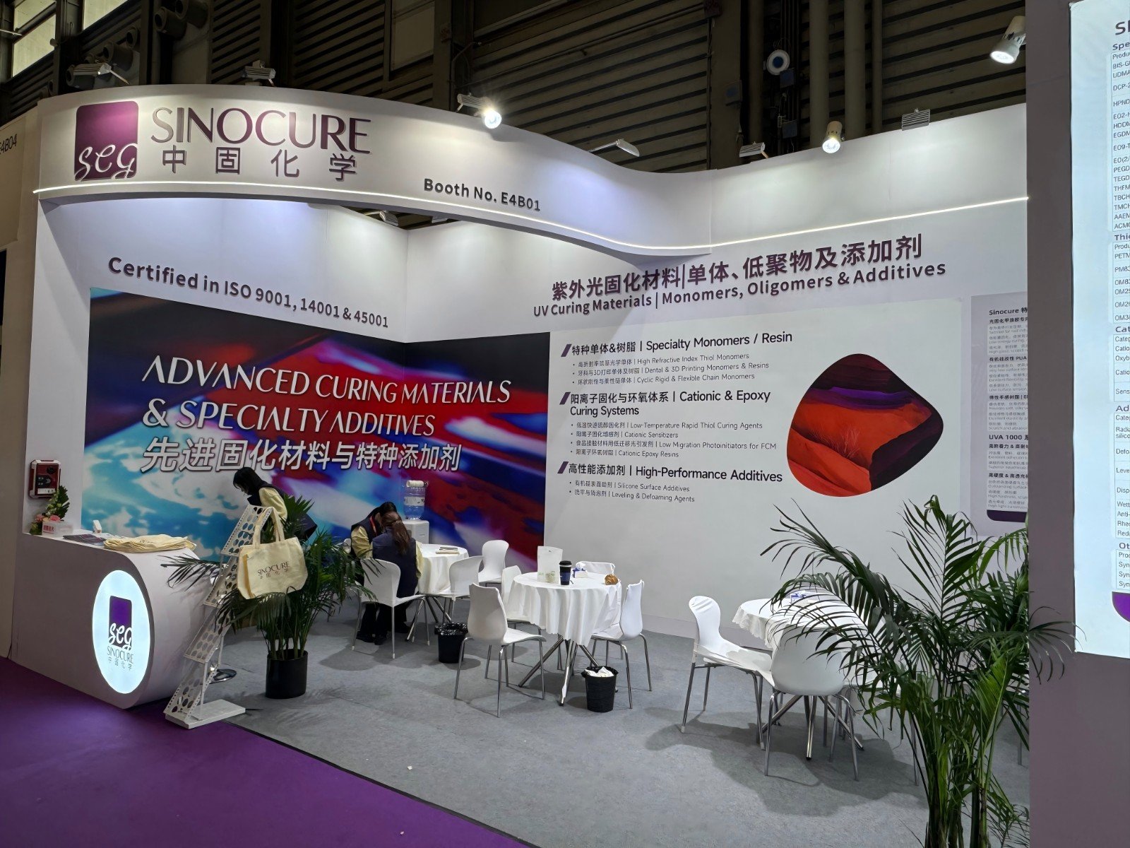 The 2025 China International Coatings Exhibition (CHINACOAT 2025) has successfully concluded at the Shanghai New International Expo Centre. Sinocure Chemical Group proudly presented its comprehensive portfolio of UV monomers, oligomers, photoinitiators, and high-performance additives at Booth E4.B01, engaging in a professional, efficient, and fruitful exchange of technology and business with partners, industry experts, and friends from across the globe.